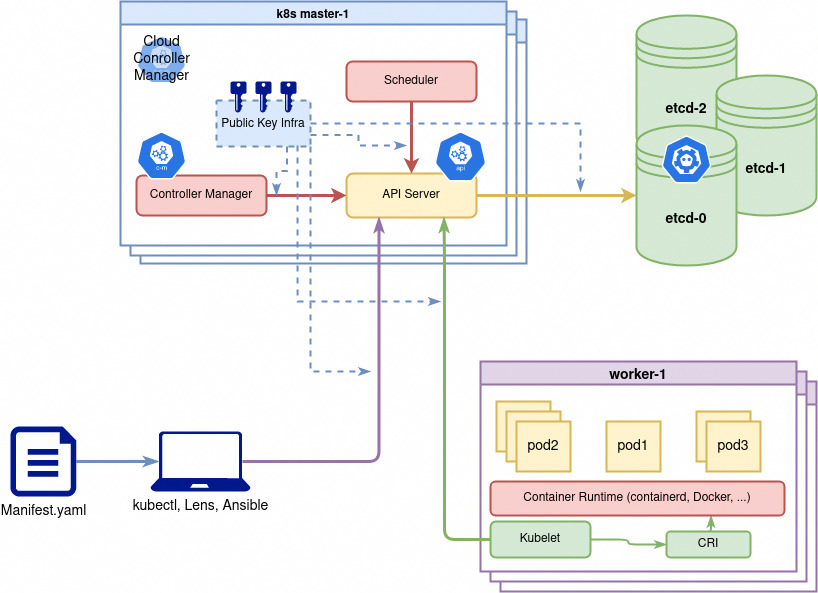 Section titled “Installer un cluster complètement à la main pour s’exercer”On peut également installer Kubernetes de façon encore plus manuelle pour mieux comprendre ses rouages et composants. Ce type d’installation est décrite par exemple ici : Kubernetes the hard way.